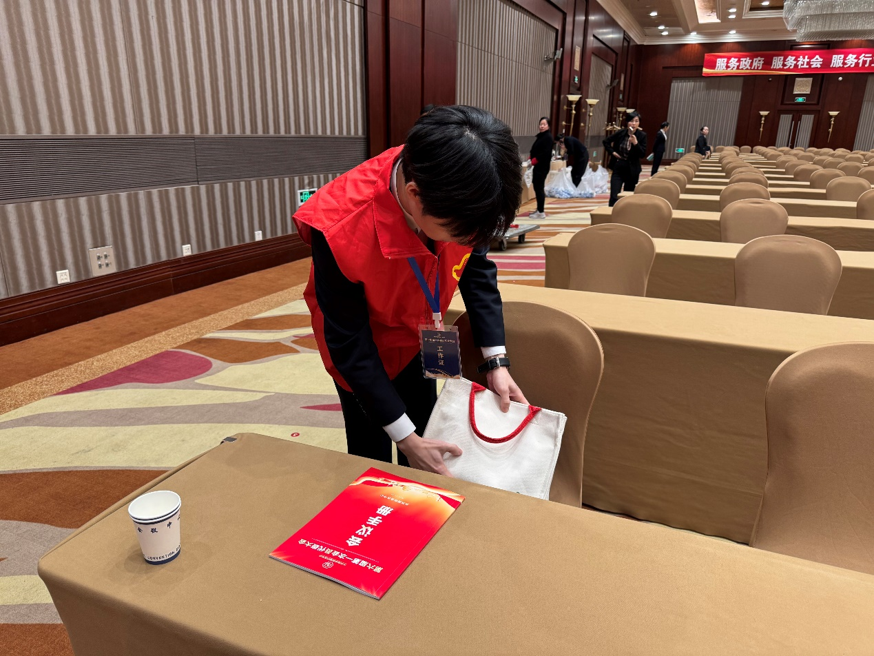会议期间,志愿团队承担了多项重要任务:提前与参会代表沟通,逐一确认时间、地点及座位信息;现场有序引导代表入场入座,并协助组织小会场议程;同时负责选票及会议纪要的精准发放。为确保流程顺畅,团队更提前参与两次全流程彩排,不断优化服务细节。